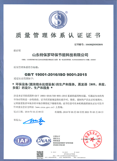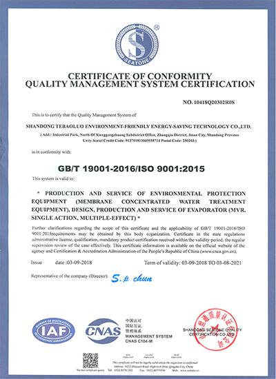山東特保羅環(huán)保節(jié)能科技有限公司位于風(fēng)景秀麗的“小泉城“—山東章丘,是一家專業(yè)生產(chǎn)MVR蒸發(fā)器及以MVR技術(shù)為核心的有機(jī)廢水處理整套解決方案的供應(yīng)商。目前公司的成套設(shè)備已在環(huán)保、食品、醫(yī)藥等多個領(lǐng)域廣泛應(yīng)用。公司設(shè)備精良,并且擁有精良的技術(shù)隊(duì)伍。是一家專業(yè)的環(huán)保節(jié)能設(shè)備公司。